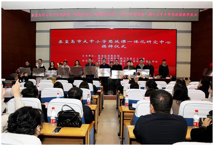 本次活动共分两个阶段,第一阶段举行秦皇岛市大中小学思政课一体化研究中心揭牌仪式,第二阶段举办“习近平法治思想”融入大中小学思政课教学展示活动。