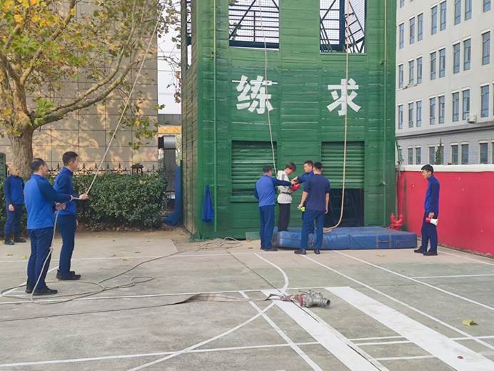 学生进行高处逃生演练
