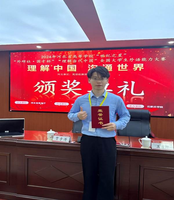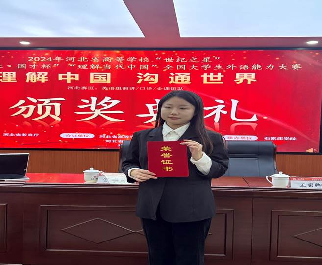 2024年11月,河北省高等学校“世纪之星”“外研社·国才杯”“理解当代中国”大学生外语能力大赛按照赛项分期举行。此次大赛以“理解中国,沟通世界”为主题,引导选手深入学习领会习近平新时代中国特色社会主义思想的核心要义,理解中国之路、中国之治、中国之理,涵养家国情怀、全球视野,拓展知识广度、思想深度,展现外语能力、跨文化能力、思辨能力、创新能力等综合素养。
