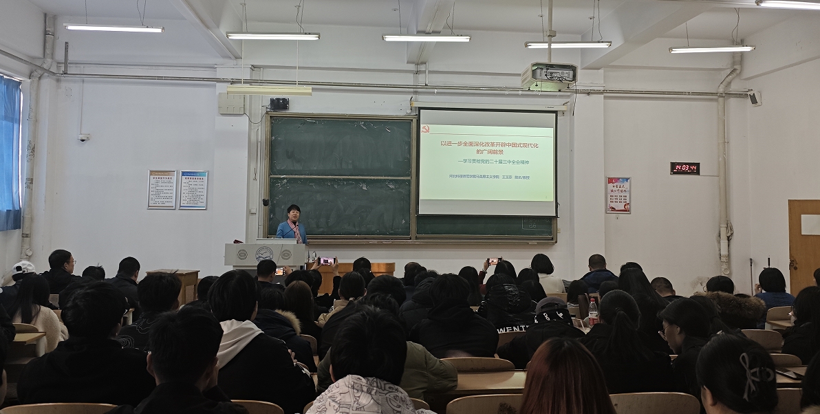 为深入学习贯彻党的二十届三中全会精神,11月21日,城市建设学院邀请学校思想政治理论教育宣讲团王玉芬教授为全院师生宣讲党的二十届三中全会精神,宣讲会由学院党委负责同志主持,学院师生120余人听取讲座。