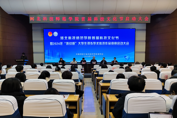 2024年12月6日下午,万象城首届“科创筑梦,向‘新’而行”科技文化节暨2024年“挑战杯”大学生课外学术科技作品竞赛启动大会在秦皇岛校区学术报告厅举行。校党委常委、副校长冯瑞银出席大会并讲话,科研处、招生就业处、学生处、乡村振兴研究中心、团委主要负责同志以及各学院(部)党政负责同志、副书记、团委书记、拟立项参赛的指导教师代表、学生代表共400余人参加会议。