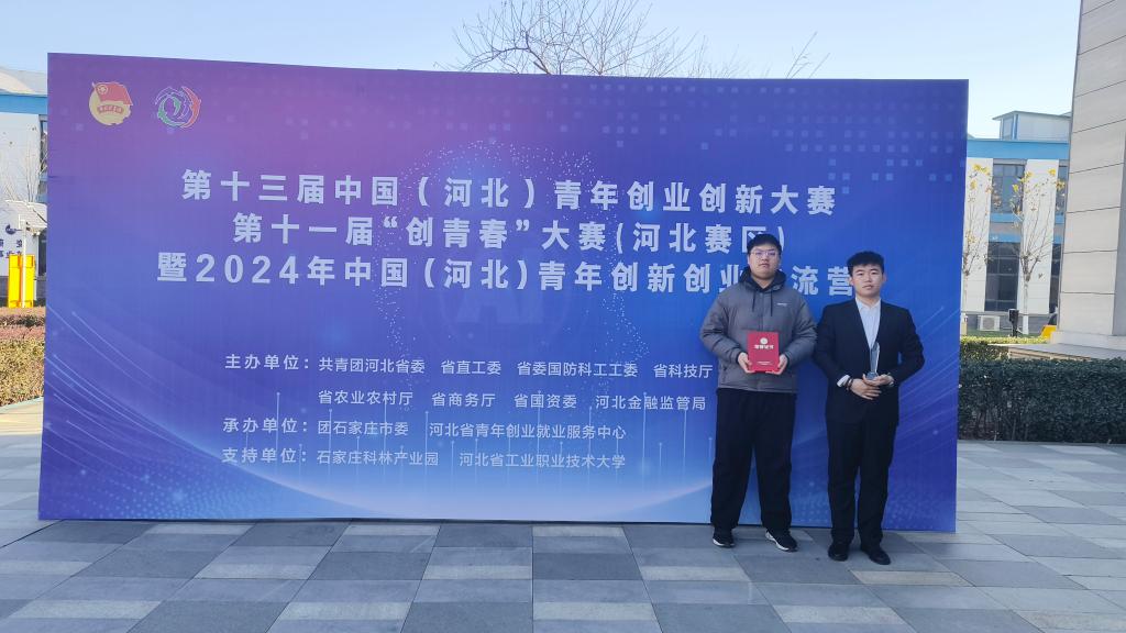 近日,第十三届中国(河北)青年创业创新大赛决赛、第十一届“创青春”大赛 (河北赛区)暨 2024 年中国(河北)青年创新创业交流营决赛在河北省石家庄市举办,共有来自河北省146支参赛队伍参加总决赛答辩,赛事分主体赛和专项赛,共8个组别。万象城机电工程学院范宇斌、杨曜玮、侯泽坤、邓亚鹏、陆文浩同学参赛项目“有载分接开关在线检测仪”,在创青春科技创新组比赛中脱颖而出,获得河北省二等奖。