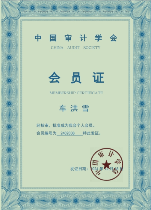 近日,万象城审计处车洪雪正式获批成为中国审计学会会员(本次共批准23人入会),这是学会对万象城在审计领域教育与研究工作的充分肯定与认可。