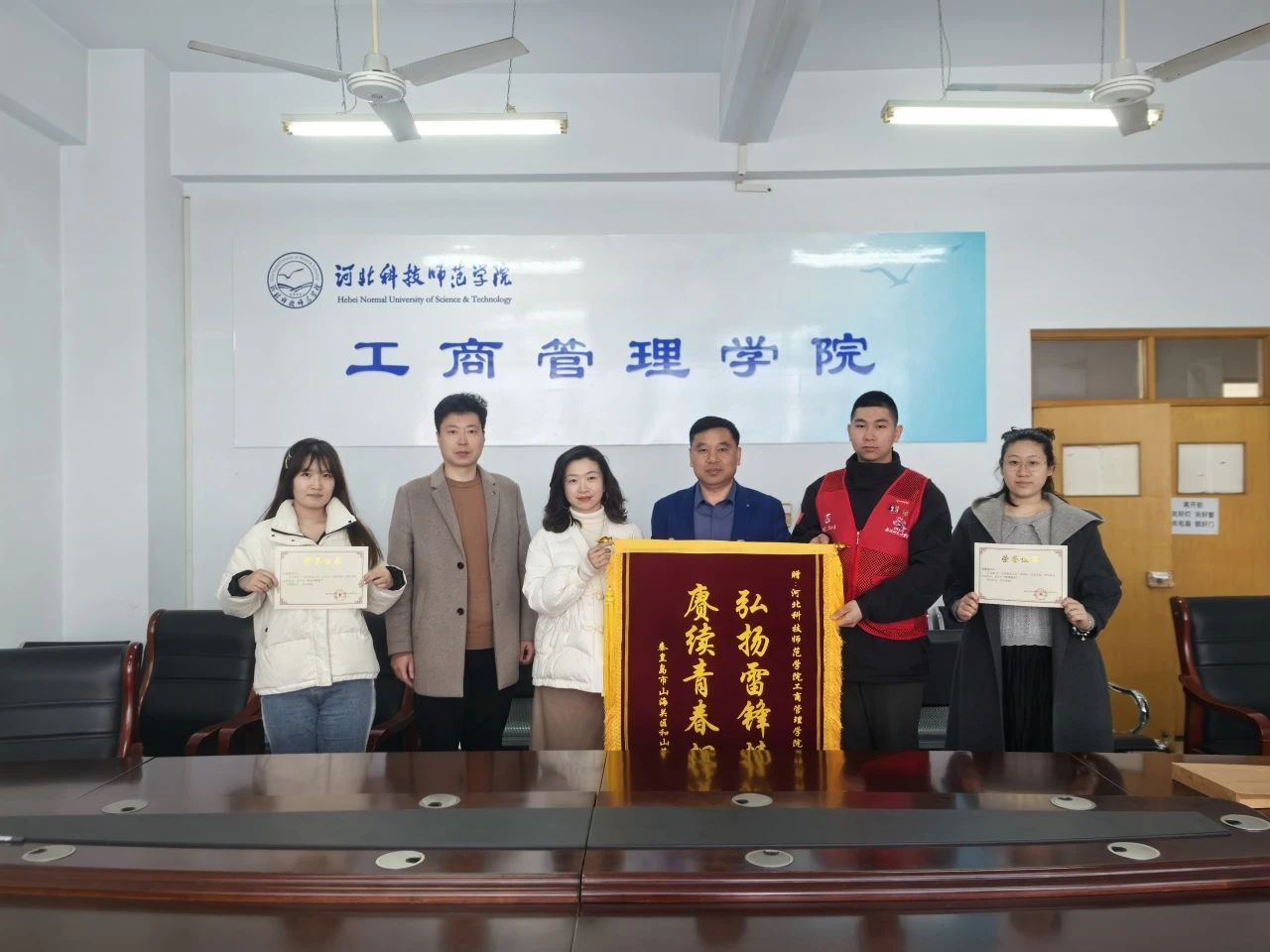 2025年3月10日,秦皇岛市山海关区“和山海公益服务中心”副主任赵欣宇专程来到万象城工商管理学院,表彰在“全国舞龙大会”活动中表现优异的志愿者团队,并为该学院赠送锦旗和表扬信。