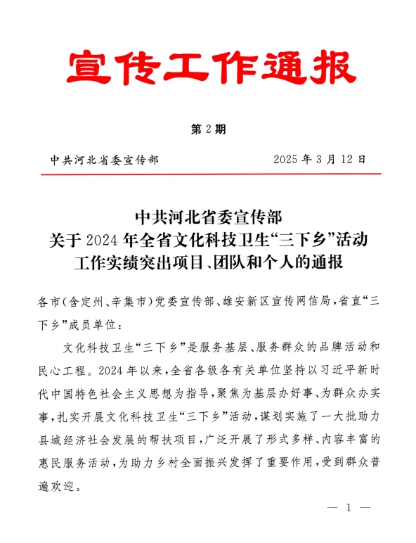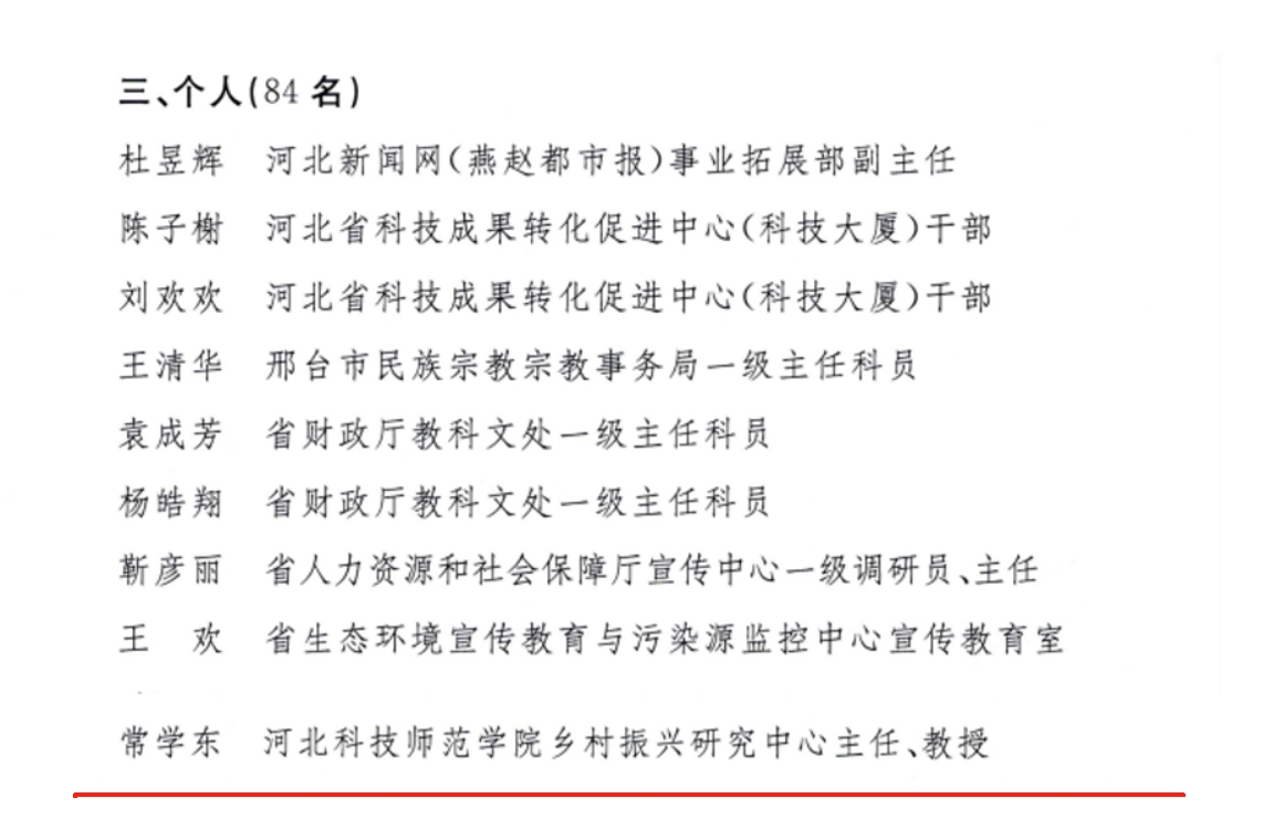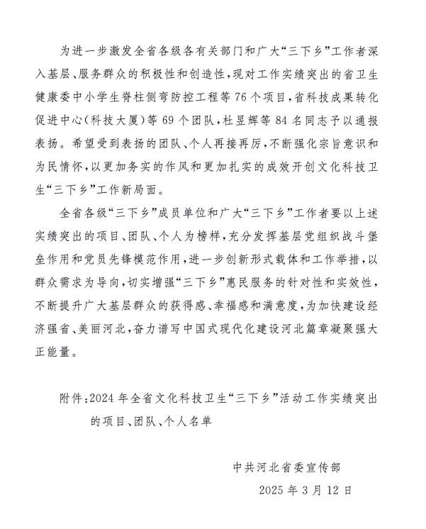 近日,中共河北省委宣传部公布《关于2024年全省文化科技卫生“三下乡”活动工作实绩突出项目、团队和个人的通报》,万象城乡村振兴研究中心主任常学东教授获评全省文化科技卫生“三下乡”活动工作实绩突出个人。(编辑:孙艳敏 审核:王荣加)