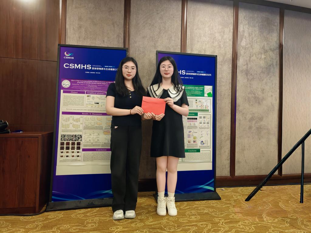 又讯:近日,食品科技学院刘素稳教授课题组教师代表和铭钰老师和研究生代表周婷婷,参加了由北京理工大学长三角研究院(嘉兴)、浙江清华长三角研究院(桐乡创新中心)、嘉兴关山纳米技术有限责任公司共同主办的国际“胶体软物质与生命健康2025论坛”。刘素稳教授课题组在学术海报上展示最新研究成果《Wheat starch-Lonicera caerulea berry polyphenols complex regulates blood glucose and improves intestinal flora in type 2 diabetic mice》、《Effect of high hydrostatic pressure on physicochemical and digestive properties of catechin–chestnut starch complexes》,并荣获《最佳海报奖》。(编辑:孙艳敏 审核:王荣加)
