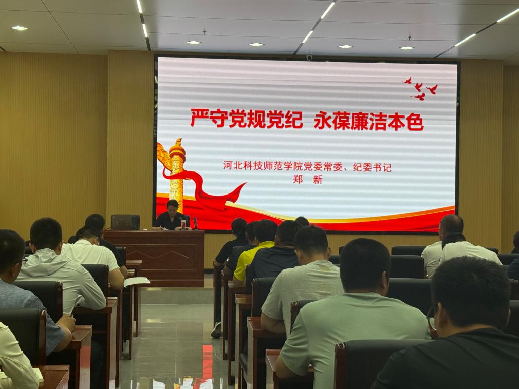 2025年6月21日晚,学校党委常委、纪委书记郑新为“国培计划(2024)”——河北省县级骨干教师能力提升培训项目(初中体育)班的党员教师,带来了一场以“严守党规党纪 永葆廉洁本色”为主题的专题党课。