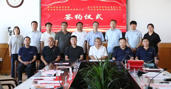 仪式上,孙伟明博士与滦州市丰万家种业有限公司曹金成董事长签署“花生土传病害种质资源抗性评价基地建设”技术服务协议;刘辉博士与秦皇岛禾苗生物技术有限公司宋春光董事长签署关于“四环素及其活性类似物产生菌的筛选与菌剂研发”技术开发(委托)协议;王晓晗博士与河北京安肥业科技有限公司企业代表签署“一株生防微生物在花生果斑病防控应用”技术转让协议。