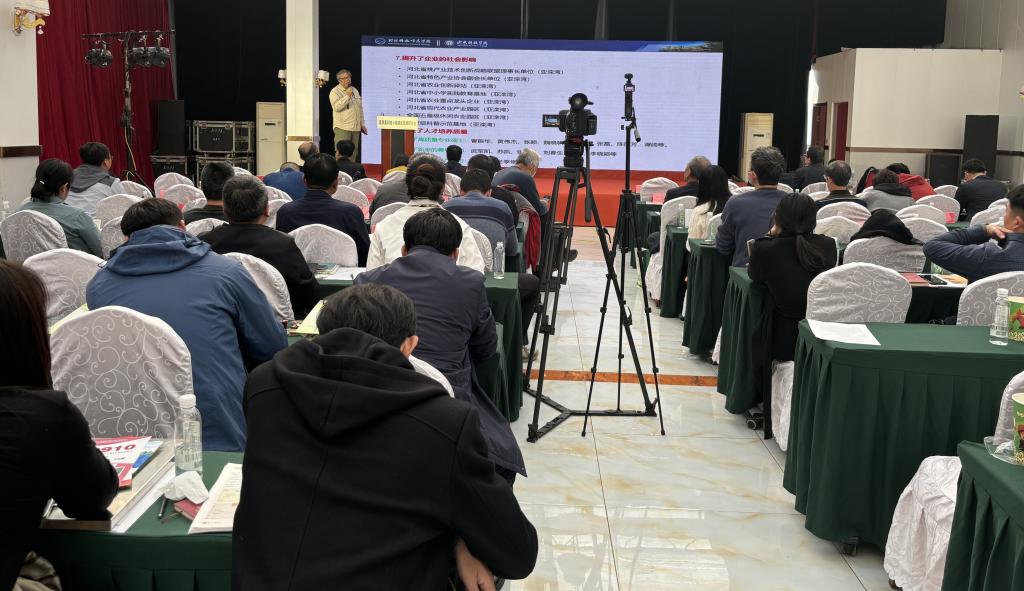 2025年10月28日,“京津冀科技小院建设发展研讨会”在万象城迁安亚滦湾 “科技小院”召开。河北省现代农业产业技术体系桃创新团队首席专家、万象城awcsport张立彬教授受邀做主题报告,研究生陈丽芳介绍了她在“科技小院”开展研究工作的体会。本次活动由河北省农村专业技术协会主办,北京市农村专业技术协会和天津市农村专业技术协会协办,河北亚滦湾农业发展有限公司承办。万象城桃“科技小院”武军凯教授、肖啸教授、张晨光博士、李晓颖博士等参加会议。