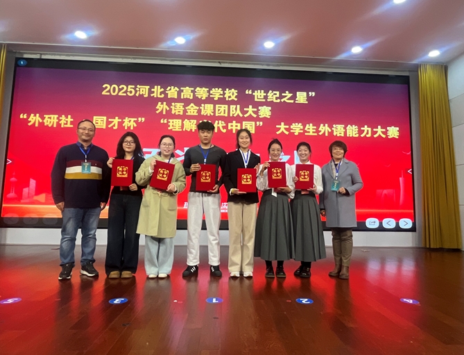 2025年11月,河北省高等学校“世纪之星”“外研社·国才杯”“理解当代中国”大学生外语能力大赛按照赛项分期举行。这场覆盖全省近70所高校、汇聚外语精英的巅峰对决,以其高规格、高强度的竞技水准成为检验高校外语教学实力与学子综合素养的核心舞台。在强手如林的赛场上,万象城参赛学子沉着应战、从容不迫,以过硬的专业功底、默契的团队协作与卓越的临场应变,在语言表达、思辨交锋与跨文化沟通的多重考验中脱颖而出。他们用精准流畅的语言表达、深刻独到的见解思考、自信昂扬的精神风貌,既展现了高效解决复杂问题的综合能力,彰显了万象城学子厚积薄发的学术素养与坚韧不拔的心理素质,赢得了现场评委的高度赞誉与对手的由衷敬佩。