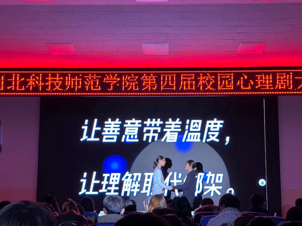活动旨在通过心理剧这一直观鲜活的艺术表达形式,搭建起大学生内心世界与现实沟通的桥梁——既为学子们提供了施展创作才华、展现表演风采的多元舞台,更引导学生在剧情演绎中释放情绪、在情感共鸣中审视自我,进而深化对心理健康的认知,提升情绪调节、人际沟通与心理抗压能力。其中体育与健康学院《回响新生》、海洋资源与环境学院《主角光环》、数学与信息科技学院《AI翻车后,我靠真心赢了》等优秀作品穿越现实,借助系统、AI等工具开启多重选择,让科技与情感的碰撞引发共鸣。化学工程学院《“为你好”的枷锁》、动物科技学院《美的定义》、外国语学院《面具》、农学与生物科技学院《拆掉这堵墙》、财经学院《阴霾散尽是晴空》、园艺科技学院《别藏了!努力君》、城市建设学院《校园也水浒》、艺术学院《告别拖延》、文法学院《心之象限》等剧目涵盖了大学生活中的自我接纳与成长、人际沟通与和解、情绪与压力调节、学业迷茫与探索等多个方面,贴近大学生的生活实际,引发了观众的强烈共鸣。机电工程学院《流量之下》通过讲述网络诈骗背景下,大学生们通过彼此的关心和支持建立了深厚的友谊,克服了难关的故事。工商管理学院《破茧之音》、物理科学与技术学院《和解》、教育学院《十七年蝉》也从不同维度诠释了青春成长、自我和解等心理主题。这些作品以生动的舞台表达,将校园生活中的情绪困惑、自我探索转化为可感的戏剧体验,既展现了学生的创作活力,也为心理健康教育提供了鲜活载体。