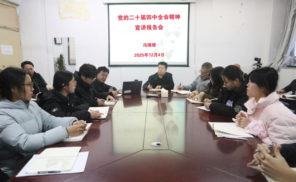 2025年12月4日,党委常委、副校长冯瑞银在秦皇岛校区向学生干部代表宣讲党的二十届四中全会精神,各校级学生组织的学生干部代表和学生处、团委、招生就业处等部门工作人员40余人参加了宣讲会。宣讲会由学生处负责人主持。