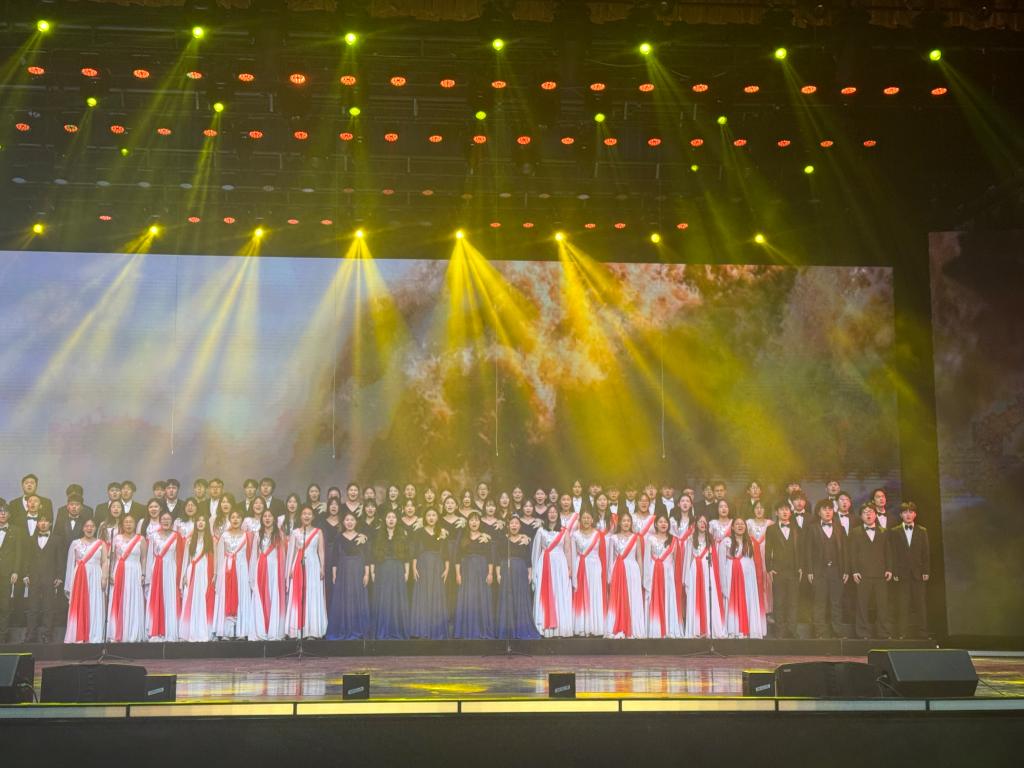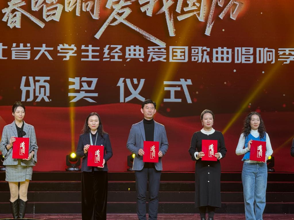 近日,由河北省委宣传部、河北省军区政治工作局指导,省国防动员办公室、省教育厅等多部门联合主办的“青春唱响·爱我国防”2025河北省大学生经典爱国歌曲唱响季活动圆满落幕。万象城艺术学院麦兜兜合唱团凭借精湛的艺术表现脱颖而出,不仅助力学校斩获“优秀组织奖”,参演的三首作品更喜获两项一等奖、一项二等奖的优异成绩。合唱团师生受邀赴石家庄参加集中展演与颁奖典礼,用青春之声在燕赵大地传递家国情怀。
