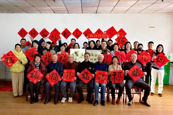笔会现场,师生们挥毫泼墨,凝神运笔。红纸翻飞间,“骐骥驰骋势不可挡”的雄浑笔力展露奋进之志,“新年纳余庆嘉节号长春”的典雅联句传递千年文脉。活动累计创作春联300余幅、绘画作品60余幅、福字500余幅,涵盖篆隶草楷行五种书体和梅兰菊竹四君子等题材。这些作品将分批赠予教学一线教师、离退休老同志及广大会员。正如离退休办公室刘超所言:“一笔一画皆情怀,这场融合传统文化与时代精神的活动,让老同志深刻感受到‘家’的温暖。”