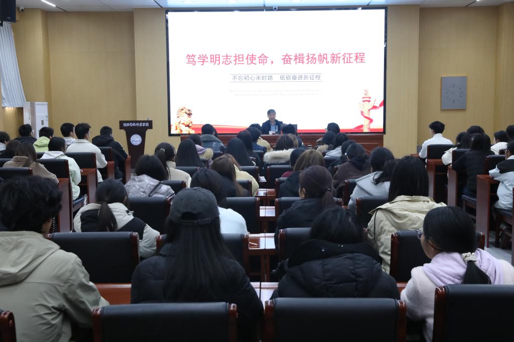 为深入学习贯彻2026年全国两会精神,全面落实立德树人根本任务,引导青年学子锚定成长方向、勇担时代使命,3月12日,校党委书记孙政以《笃学明志担使命 奋楫扬帆新征程》为题,为财经学院财务管理专业2025级全体学生讲授新学期“开学第一课”。课程紧扣时代脉搏、立足专业特色、聚焦学生成长,为青年学子新学期征程指明方向、注入动力。