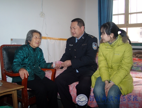 2009年1月20日上午,昌黎县公安局国保大队大队长高接力、副大队长刘跃军及部分干警代表来到我院昌黎校区走访慰问了付华母女。我院保卫处副处长陈建新及学生处、计算机系等相关同志陪同走访慰问。