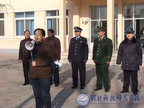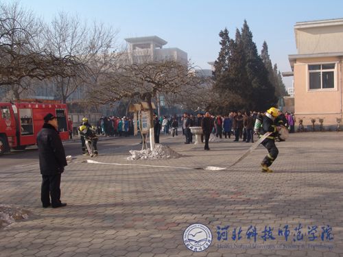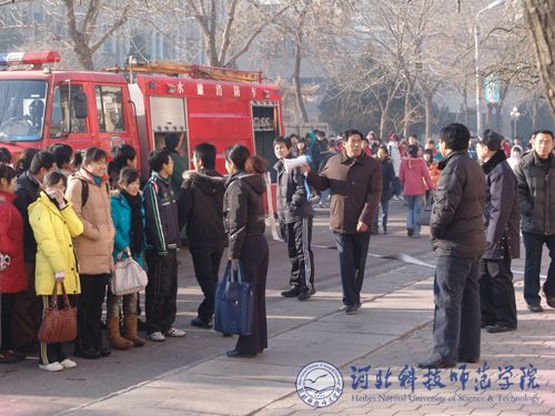 2008年12月23日上午9:45时,我院昌黎校区组织开展了应急疏散与搜救仿真实战演练活动。昌黎县公安局副局长徐庆,我院副院长孟令臣,保卫处处长胡志杰、昌黎校区办公室主任刘卫东、保卫处副处长陈建新、后勤服务公司总经理姜亚东、学生处副处长马爱林等相关部门领导亲临演练现场观摩演练。昌黎校区各系主要领导及1000余名师生,昌黎县公安局国保大队干警,昌黎县消防大队20余名消防官兵参加了实战演练。