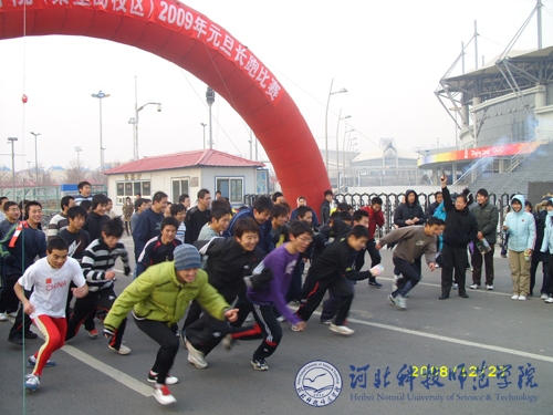 图为体育系在秦皇岛校区举办的体育系、计算机系等10余个系师生参加的庆元旦长跑比赛赛场