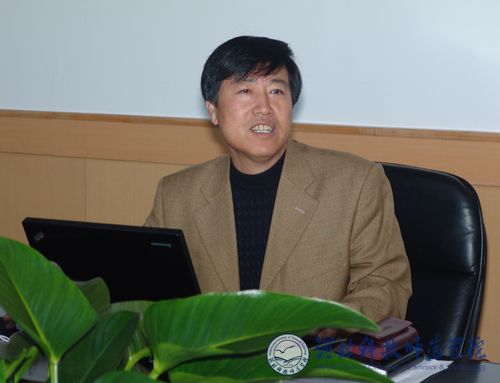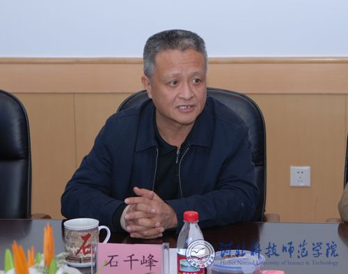 图为党委书记石千峰同志在主持汇报会并讲话