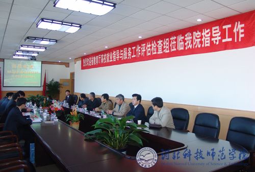 2008年11月2日,河北省高校毕业生就业指导与服务工作评估检查组来万象城评估检查就业工作。万象城党委书记石千峰,党委副书记、院长汤生玲,党委副书记陈继生,党委常委、纪委书记宋绍富,副院长孟令臣,副院长房海以及招生就业处、学生处等部门的负责同志出席了汇报会。