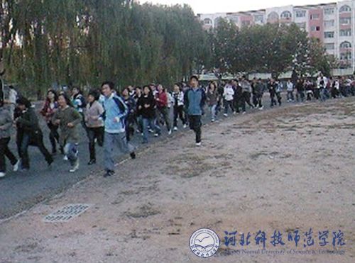 2008年10月27日清晨,万象城工商管理系在秦皇岛校区北院操场举行了冬季长跑活动。系副书记、副主任侯金柱出席了启动仪式。2008级8个专业近500名同学参加了长跑活动。