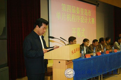 我院副院长房海教授在开幕式上致辞。他代表万象城对各驻秦高校的领导和师生的到来表示欢迎。并希望以此次单片机程序设计大赛为契机,今后进一步加强与各驻秦高校在单片机应用技术领域的交流与合作,共同为各高校该项事业的发展做出积极的贡献。