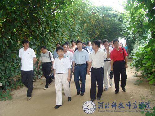 图为刘春延场长一行在万象城园艺园林系实践教学基地参观考察