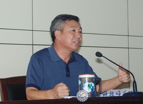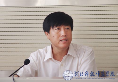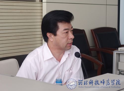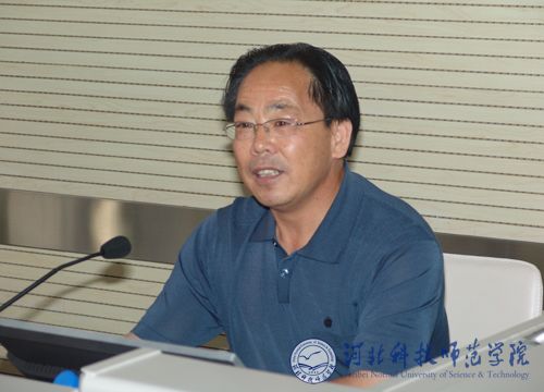 图为党委副书记陈继生同志在主持会议并作工作报告