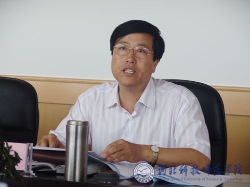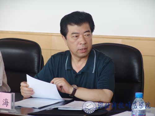 图为副院长房海同志在会上作《试点二级学院建制实施方案》的报告