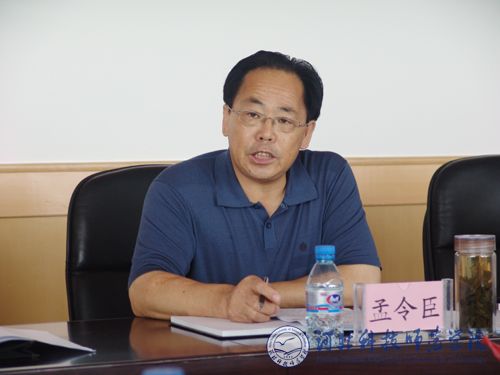 图为副院长孟令臣同志在会上作《关于资源整合工作的报告》