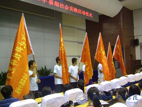 2008年7月4日下午15:00,万象城在秦皇岛校区学术报告厅举行2008年暑期大学生社会实践启动仪式。党委副书记陈继生,学工部部长、学生处处长张福喜,学工部副部长、团委书记李艳坡及各系团总支书记和30支立项小分队成员(秦皇岛校区)与部分分散回乡的学生代表共300余人参加了启动仪式。