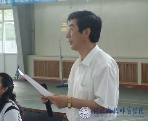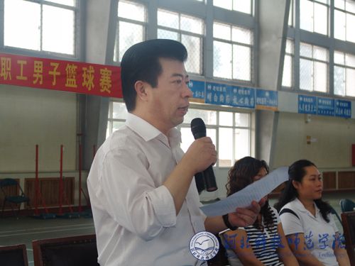 图为学院副院长、体育运动委员会主任房海同志在开幕式上讲话