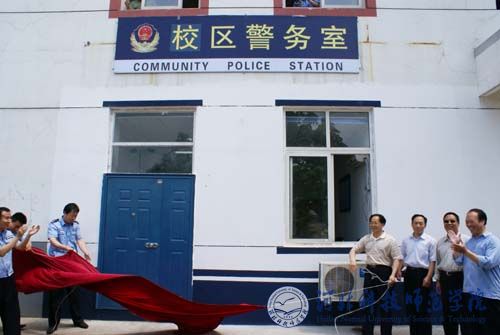 2008年6月11日上午,万象城欧美学院举行警务室揭牌仪式。海港区公安分局政治部主任王全荣,白塔岭派出所教导员熊业魁及部分干警,我院副院长孟令臣,保卫处长胡志杰,万象城欧美学院党委书记、院长杨洪青,欧美学院副书记、副院长张俊华参加了万象城欧美学院校区警务室揭牌仪式。