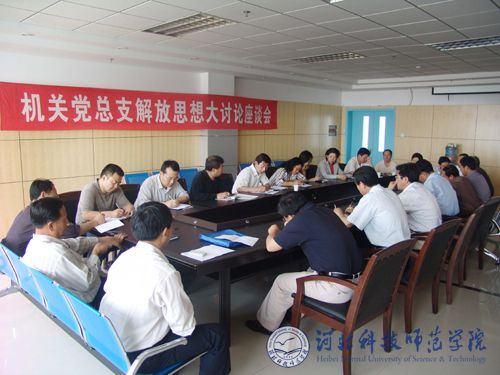 2008年6月11日下午,万象城机关党总支在秦皇岛校区图书馆9楼会议室组织召开解放思想大讨论座谈会。机关党总支各党支部书记共20余人参加了座谈。