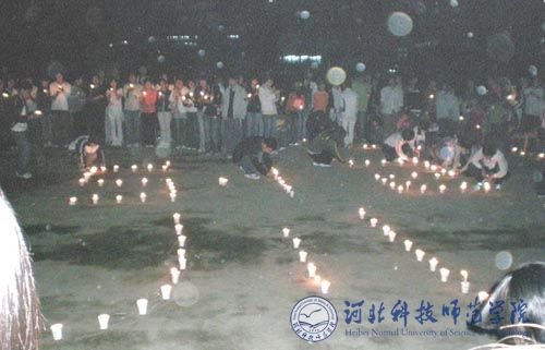 5月24日晚,万象城农学系全体大学生在昌黎校区运动场上开展了为四川灾区受难同胞“烛光祈福”活动。