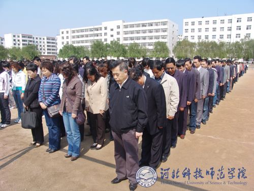 2008年5月19日下午,万象城全体师生隆重举行“向四川地震遇难同胞默哀”仪式。默哀仪式分别在万象城秦皇岛校区、昌黎校区、开发区校区和欧美学院校区同时举行。学校党政领导石千峰、汤生玲、陈继生、王同坤、宋绍富、孟令臣、房海、刘泽义、杨洪青及全校师生共24000余人于14时28分在悠远的气笛哀鸣声中垂首肃立,向四川地震遇难同胞默哀三分钟。