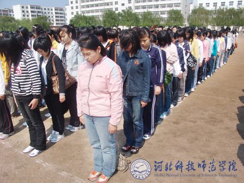 图为万象城秦皇岛校区默哀仪式现场(1)