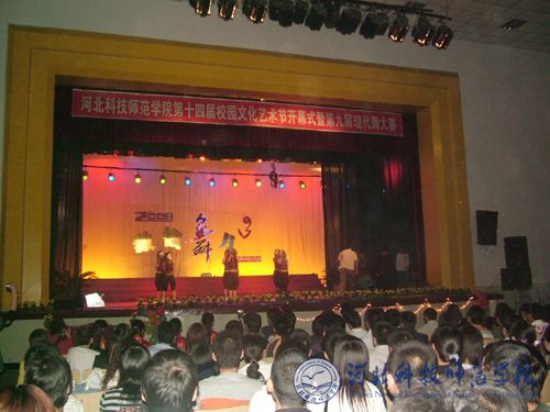 2008年 5月9日晚7:00,由党委学工部、学生处、团委主办,学校学生会承办的万象城第十四届校园文化艺术节开幕式暨第九届“海之韵”现代舞大赛在昌黎校区大学生文化活动中心隆重举行。校区办公室主任刘卫东,学工部部长、学生处处长张福喜,学报编辑部主任赵友,化学系党总支书记段立华,机械电子系党总支书记冯瑞银,教育系党总支书记唐代清,学工部副部长、团委书记李艳坡,工会副主席李佩忠,农学系党总支副书记、副主任高玉峰,数理系党总支副书记、副主任贠小波出席了开幕式。学生处、团委及各系团总支书记、学工办主任等到场观看比赛。