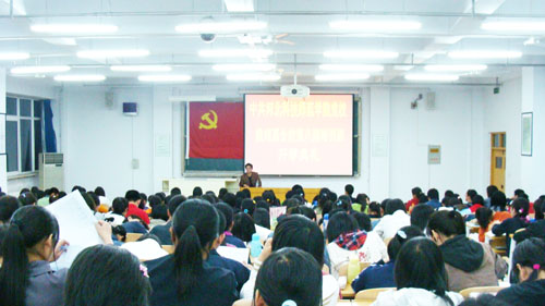 培训班上,贠小波同志给参加培训的学员上了《怎样做一名合格的共产党员》的第一堂课。他从参加党校学习的意义,申请入党必须具备的条件,做一名合格党员的标准,如何以实际行动向党组织靠拢实现自己的入党愿望,入党必须经过的组织程序,做合格党员是一生一世的事情等五个方面深入浅出地进行了阐述。同时又结合实际有重点地强调了认真学习贯彻党的十七大精神、加深对党的基本理论和基本知识的理解和把握、认真系统全面地学习新党章等。参加培训的所有学员听得聚精会神,有的学员边听边认真做着笔记。培训班在同学们热烈的掌声中圆满结束。