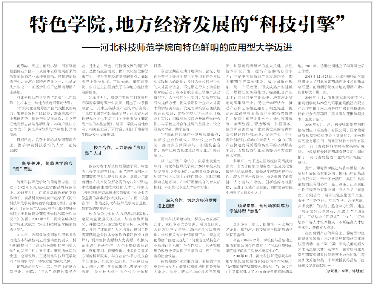 原文链接如下:河北日报:《特色学院,地方经济发展的“科技引擎”》