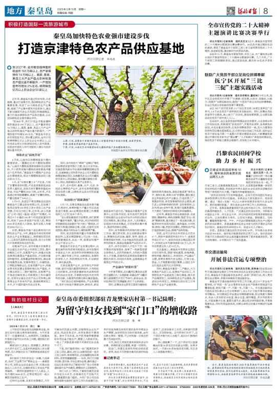 《河北日报》:秦皇岛加快特色农业城市建设步伐 打造京津特色农产品供应基地