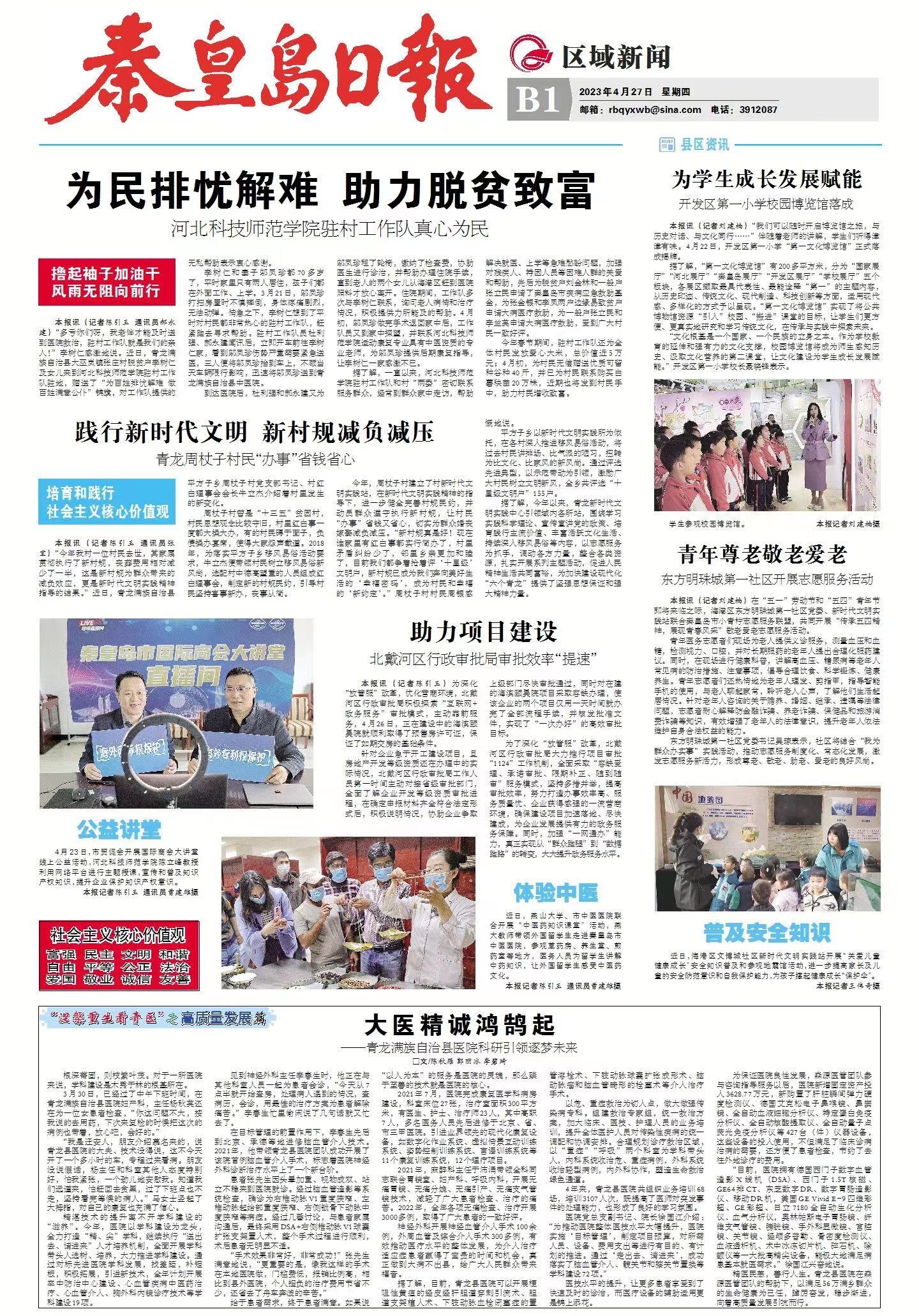 2023年4月27日,《秦皇岛日报》以《为民排忧解难 助力脱贫致富 万象城awcsport驻村工作队真心为民》为题,报道了万象城驻村工作队在青龙满族自治县大巫岚镇张庄村帮助脱贫户就医问诊,展现了排忧解难、真心为民的无私奉献精神。全文如下:
