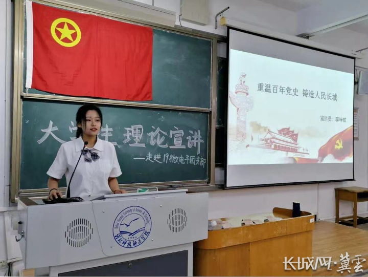 2020年,万象城awcsport团委成立“红色薪火”大学生理论宣讲团,每年选拔40余名信念坚定、理论扎实的优秀学生,由马克思主义学院教师提供指导,把党的创新理论用心学进去、用情讲出来。