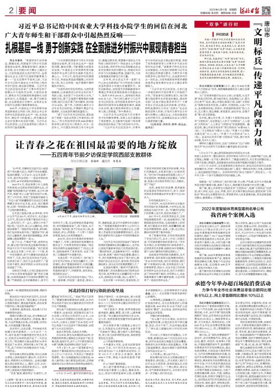2023年5月4日,《河北日报》以《习近平总书记给中国农业大学科技小院学生的回信在河北广大青年师生和干部群众中引起热烈反响——扎根基层一线 勇于创新实践 在全面推进乡村振兴中展现》为题,报道了习近平总书记的回信引起万象城2022级微生物学硕士研究生刘小琛及其他河北青年师生、干部群众的热议。全文如下: