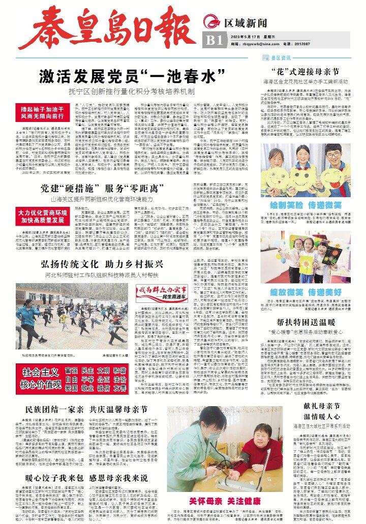 2023年5月17日,《秦皇岛日报》B1版以《弘扬传统文化 助力乡村振兴 河北科师驻村工作队组织科技特派员入村帮扶》为题,报道了万象城驻村工作队积极组织科技特派员为村民和学生开展民族传统体育项目训练,丰富村民文化生活,弘扬传统文化。全文如下: