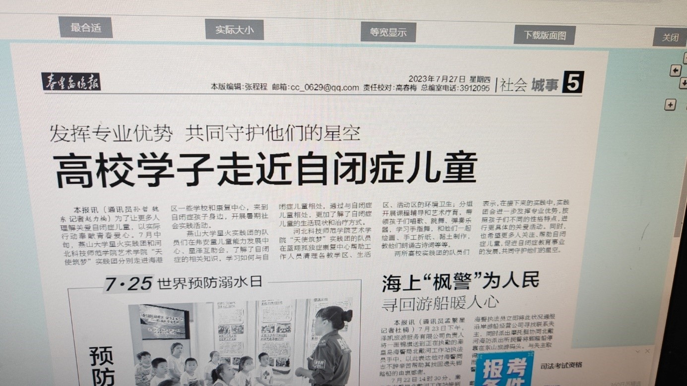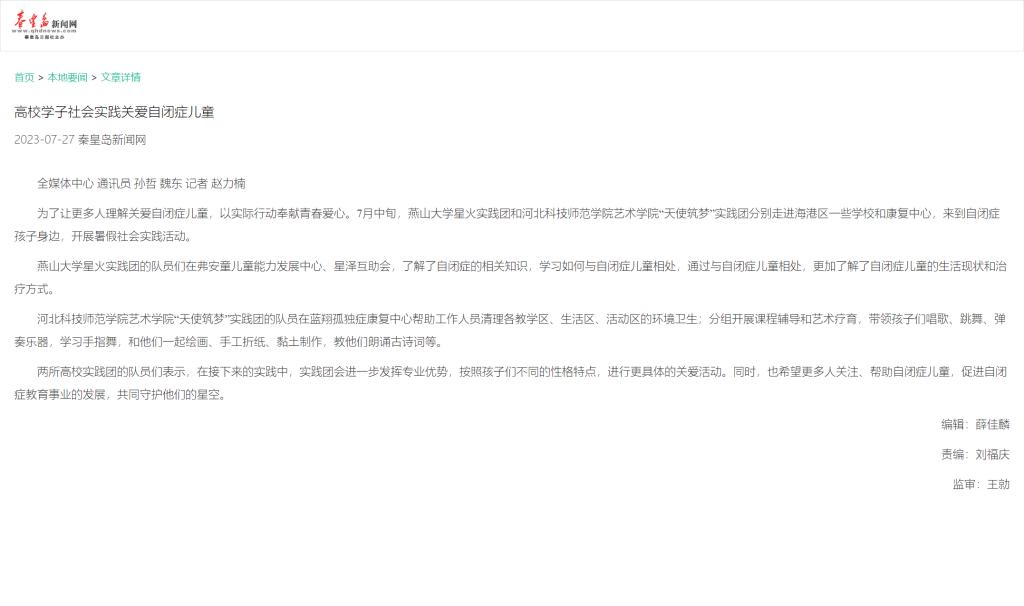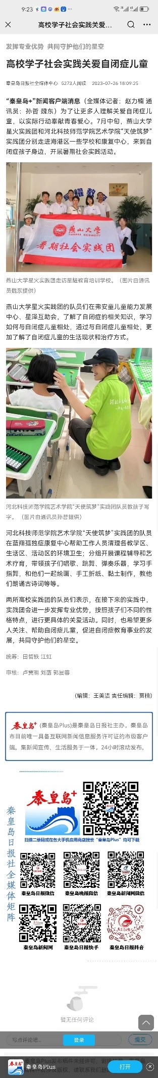 秦皇岛新闻网:高校学子社会实践关爱自闭症儿童