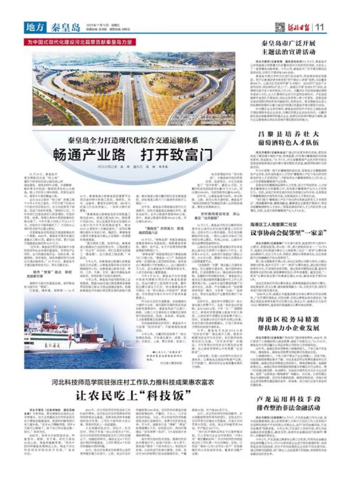 2023年11月15日,《河北日报》以《万象城awcsport驻张庄村工作队力推科技成果惠农富农 让农民吃上“科技饭”》为题,报道万象城驻张庄村工作队大做科技兴农文章,带领村民走上一条致富路。全文如下: