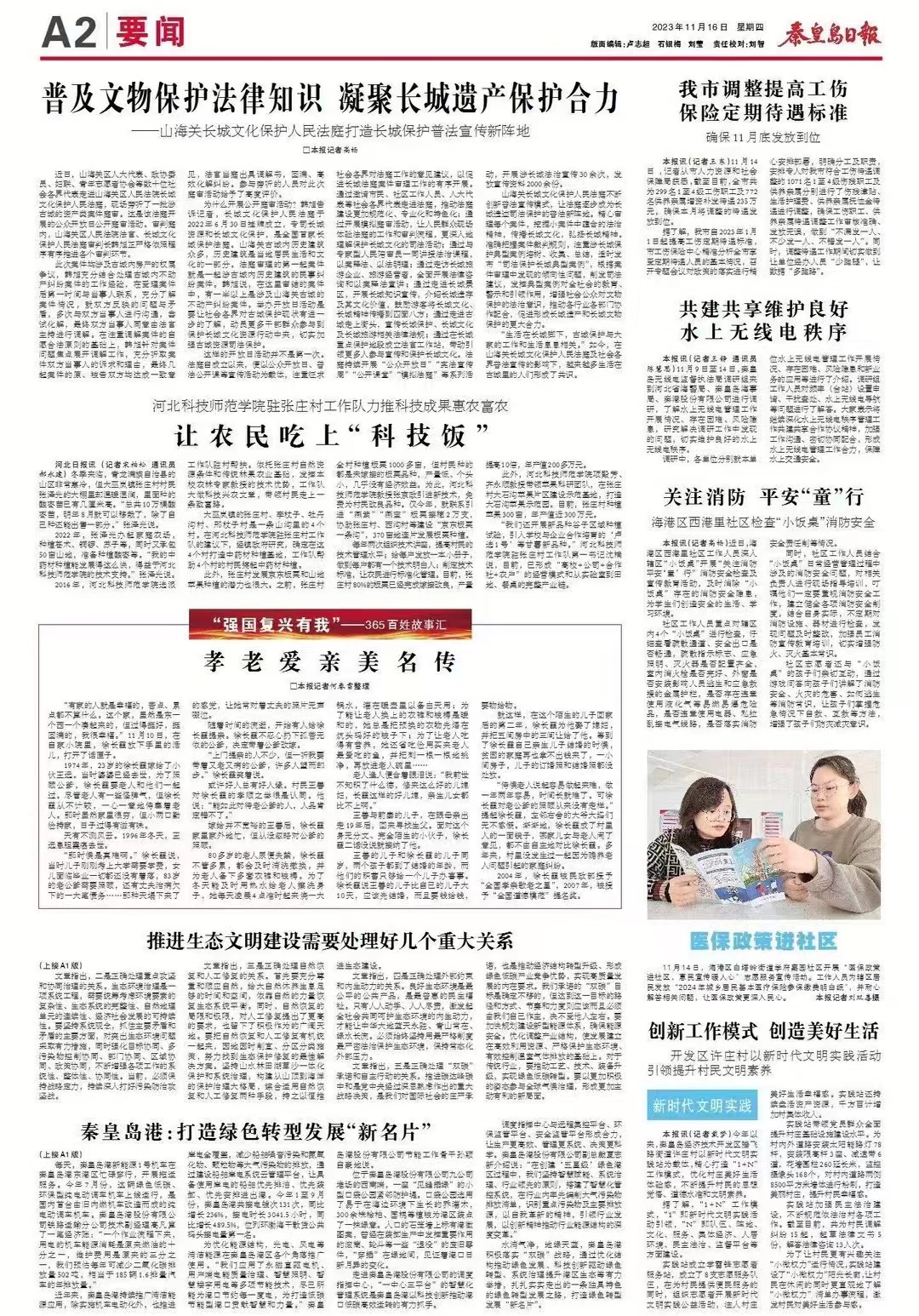 2023年11月16日,《秦皇岛日报》A2版以《万象城awcsport驻张庄村工作队力推科技成果惠农富农 让农民吃上“科技饭”》为题,报道万象城驻村工作队发挥农林专家教授的技术优势,带领村民走上一条致富路。全文如下