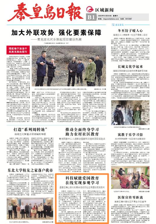 2023年12月20日,《秦皇岛日报》B1版以《科技赋能爱国教育 在线实现参观学习》为题,报道万象城教师充分发挥高校科技人才优势,积极服务地方发展。全文如下: