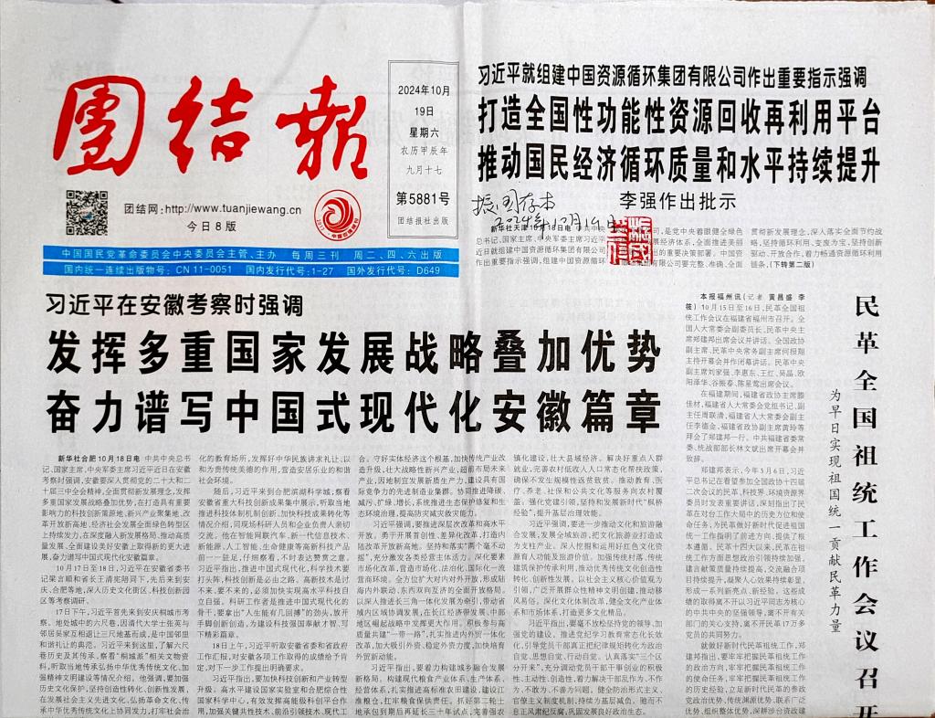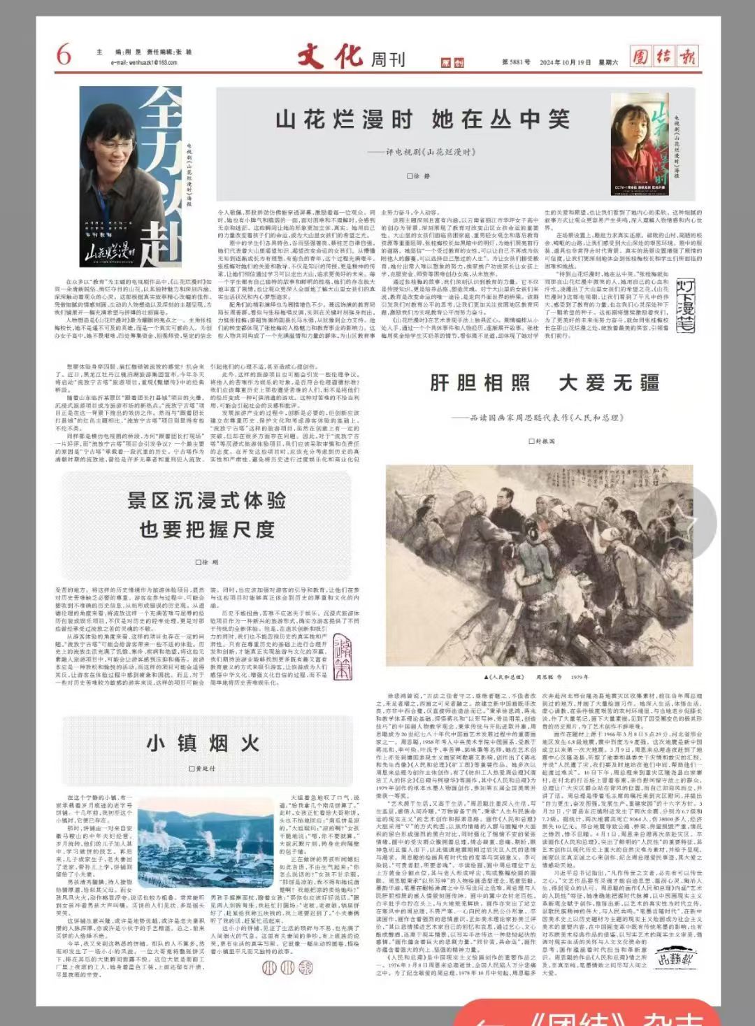 2024年10月19日,《团结报》以“肝胆相照,大爱无疆——品读国画家周思聪代表作《人民和总理》”为题,报道了万象城awcsport艺术学院封振国副教授品读国画家周思聪代表作《人民和总理》文章。